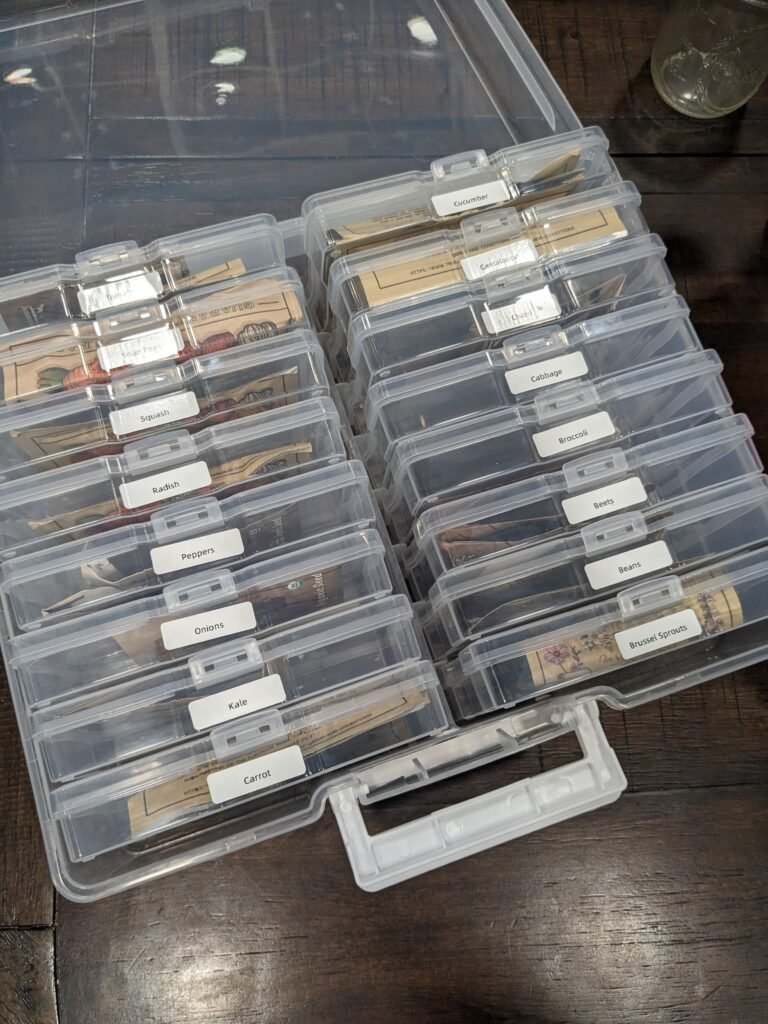 Over the years, we’ve settled into a simple system that keeps our seeds neat, easy to find, and ready to use.